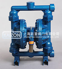 在隔膜泵的兩個對稱工作腔中,各裝有一塊有彈性的隔膜,聯(lián)桿將兩塊隔膜結(jié)成一體,壓縮空氣從泵的進氣接頭進入配氣閥后,推動兩個工作腔內(nèi)的隔膜,驅(qū)使聯(lián)桿聯(lián)接的兩塊隔膜同步運動。與此同時,另一工作腔中的氣體則從隔膜的背后排出泵外。一旦到達行程終點。配氣機構(gòu)則自動地將壓縮空氣引入另一個工作腔,推動隔膜朝相反方向運動,這樣就形成了兩個隔膜的同步往復(fù)運動。每個工作腔中設(shè)置有兩個單向球閥,隔膜的往復(fù)運動,造成工作腔內(nèi)容積的改變,迫使兩個單向球閥交替地開啟和關(guān)閉,從而將液體連續(xù)地吸入和排出。