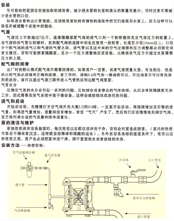 工程塑料-QBY3氣動隔膜泵具有質量可靠使用壽命長、噪音底、震動小、永不死機、做工精細等六大優(yōu)點,即能抽送流動的液體,又能輸送一些不易流動的介質,具有自吸泵、潛水泵、屏蔽泵、泥漿泵和雜質泵等輸送機械的許多優(yōu)點。